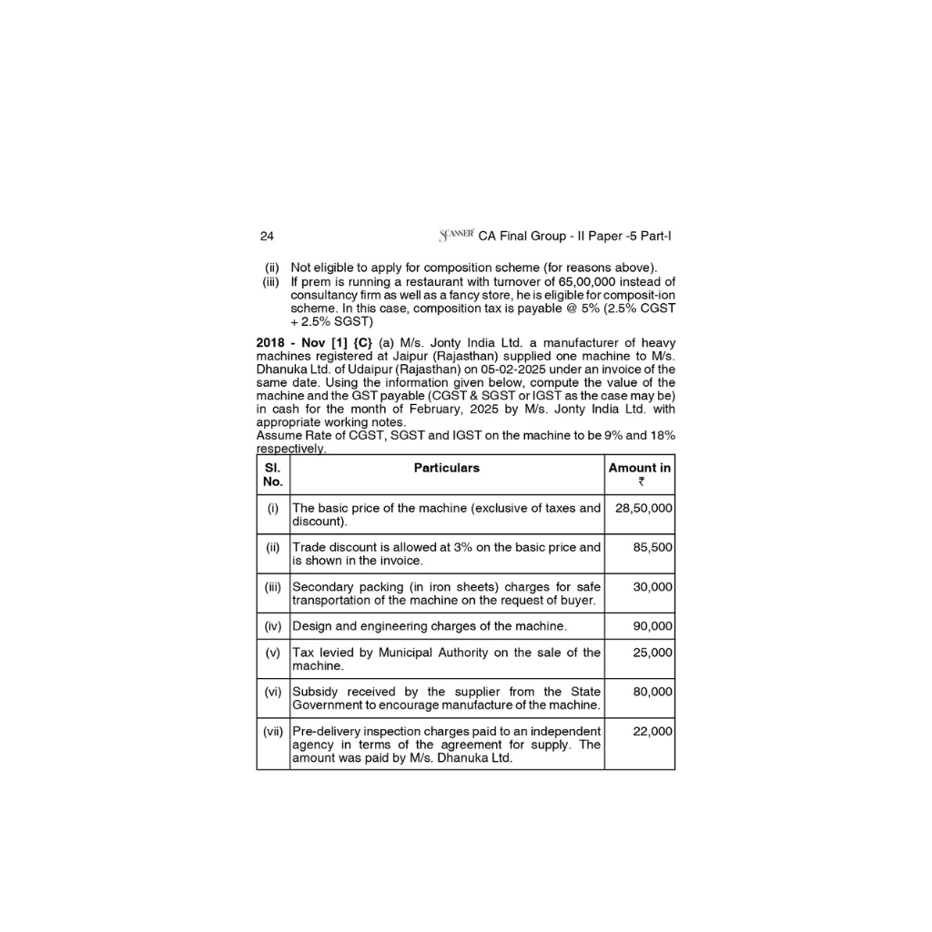 Paper 5 – Indirect Tax Laws: GST Law (CGST, SGST, IGST), Supply, ITC, Returns, Job Work, Refunds, Appeals, Penalties, GST Audit, Customs Act, FTP, Enforcement Procedures, Ethics & Provisions