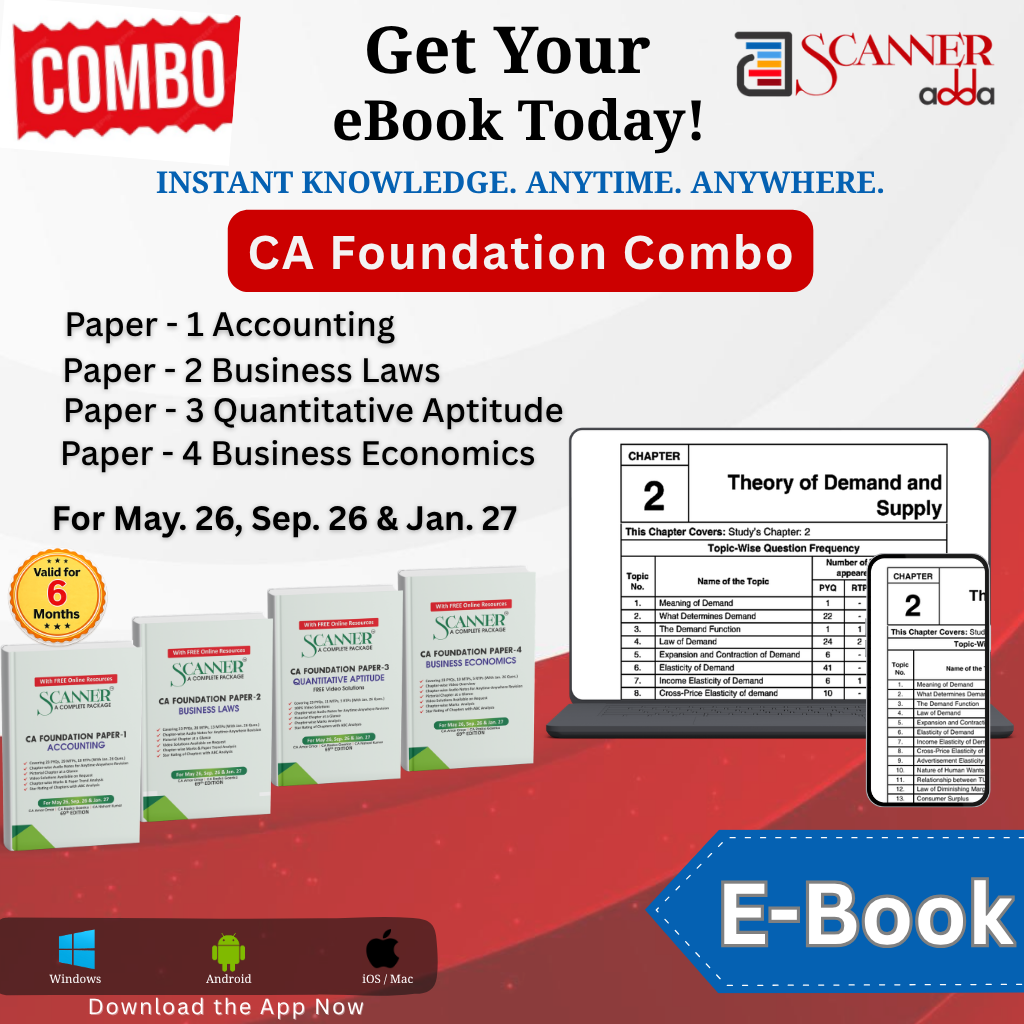 Get the CA Foundation Scanner Combo (Updated Edition) – your 4-in-1 exam prep guide for CA Foundation 2026–27 exams.
