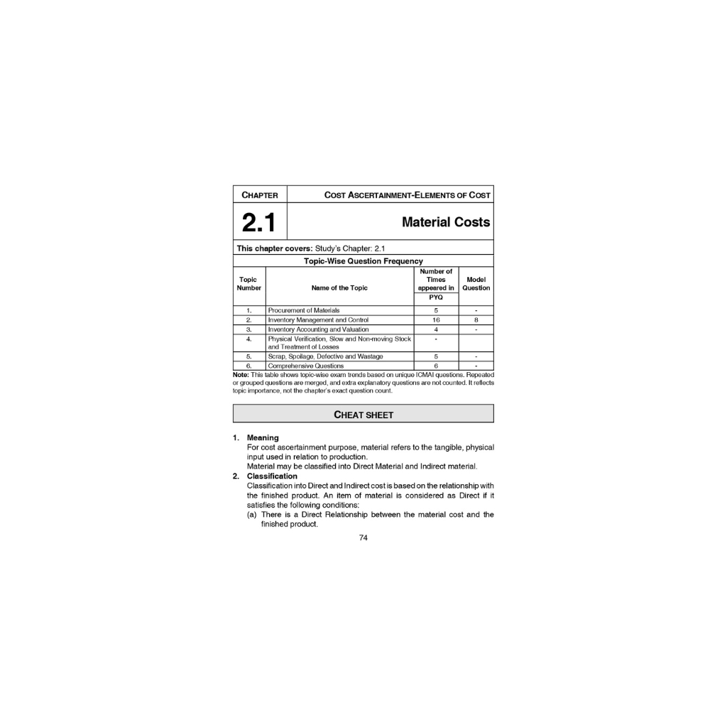 📘 CMA Inter – Paper 8 Cost Accounting Scanner (70th Edition)