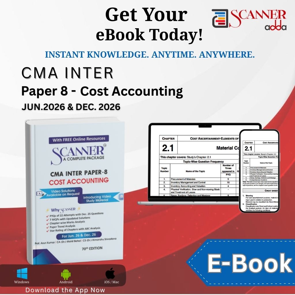 Shop CMA Inter books & solved papers at ScannerAdda. Trusted study tools for Group 1 & 2 with updated content & exam-focused preparation.